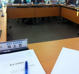 25개 구청 신문대금만 130억! 주민감사청구 기자회견 기초의회 발전을 위한 한걸음 모임(기발한 모임) 의원님들과 서울시의회 기자회견실에서 을 진행했습니다. 성북에서도 이윤희의원님 주도로 김문수 시의원님, 성북교육문화사랑시민모임 등과 같이 주민 서명을 받아 감사청구했구요. 위법적이고 낭비적인 요소는 제거하고, 지역신문 등의 건강한 발전 정책을 고민하는 시간이었습니다. 기자회견 후 공청회 및 세미나도 진행. 뜻 맞는 여럿이 모이면 못할게 없습니다..^^ 더보기 인권성북이 될 날을 기다리며~ 2차 성북구 인권위원회 회의. 인권위원님들의 인권을 위해 얼굴빼고 도촬..^^; 인권위원님들의 진지한 고민에 감사담당관 임권팀은..할 일들이 늘어나는듯..ㅎㅎ 시간과 성과주의에 쫒겨 일하지 말 것. 이 오늘의 핵심인듯 싶네요.^^ 다음달 회의는 성북구 인권 관련 핫이슈 점검토론회로 진행됩니다. 정릉동 스카이아파트 문제와, 월곡동 성매매집결지 문제, 인권적 측면에서 CCTV 확대정책을 어떻게 볼 것인가의 문제, 인권선언문 구성 논의 및 인권관련 행사 자문 등이 3차회의 주제입니다. 덕분에 많이 배우고 익히고 있습니다. 더보기 이전 활동자료는 네이버 블로그로.. 네이버에서 티스토리로 이사왔습니다. 한동안 뜸하긴 했었지만.. 그래도!! 이전 자료를 다 옮겨오기 전까지는 네이버 블로그에서 확인해주세요~~ http://mok_soyoung.blog.me/ 더보기 이전 1 ··· 56 57 58 59 60 61 다음