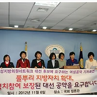 | 전국여성지방의원네트워크, 대선 후보에 요구하는 여성공약 기자회견 (0) | 2012.11.06 |